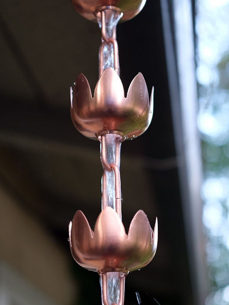 For larger homes that demand a bolder visual impact, large cup style rain chains are the way to go.