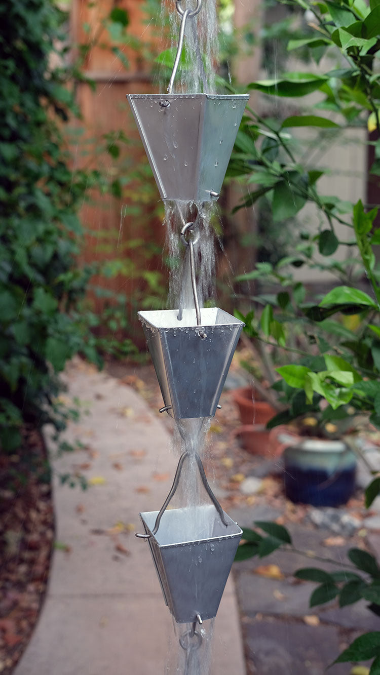 Cup style rain chains are very popular and look great, but deciding which size cups you need can be confusing!