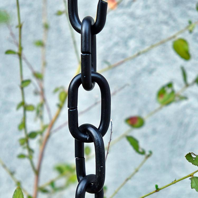In contrast, most link style rain chains are designed to look like classic chains, with interlocking links that create an open path for water. These give a more rustic, simple aesthetic compared to the structured look of cups.
