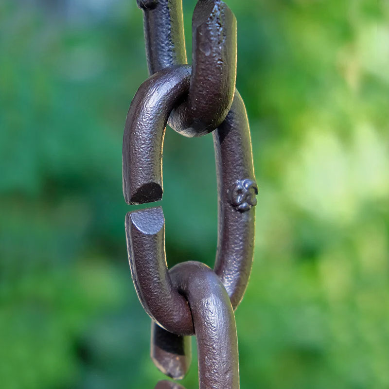 The Cast Oval Links Rain Chain exudes timeless charm with its classic oval-shaped links. Crafted from durable materials, it offers both durability and style, ensuring years of reliable performance while enhancing your home's curb appeal.