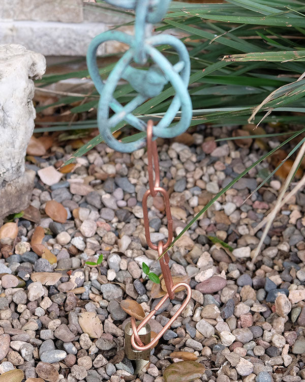 Anchoring your rain chain to the ground is essential for stability in high winds. Without proper anchoring, the rain chain can sway excessively, which may lead to damage or detachment. You can anchor your rain chain using a ground stake or by securing it to a heavy basin or decorative rock. Ensure the anchor is deep and heavy enough to prevent the chain from moving excessively. It's also important not to pull the rain chain too tight because that will cause damage to the rain chain overtime. Leave enough slack for the chain to hang naturally, but tight enough so that it can't sway and hit anything.