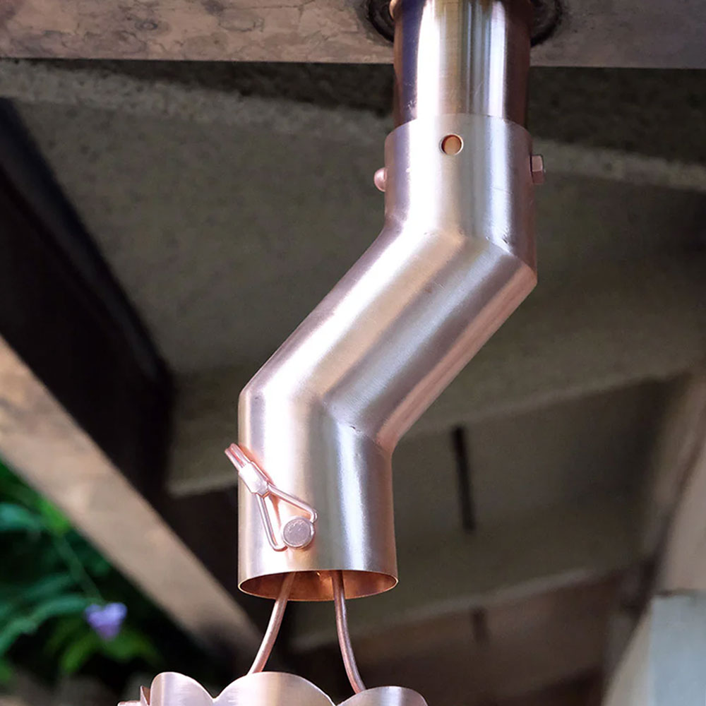 If you have planters, garden decorations, or other landscape features near the downspout area, an offset extension can help position the rain chain in a way that complements your garden design without causing water damage.