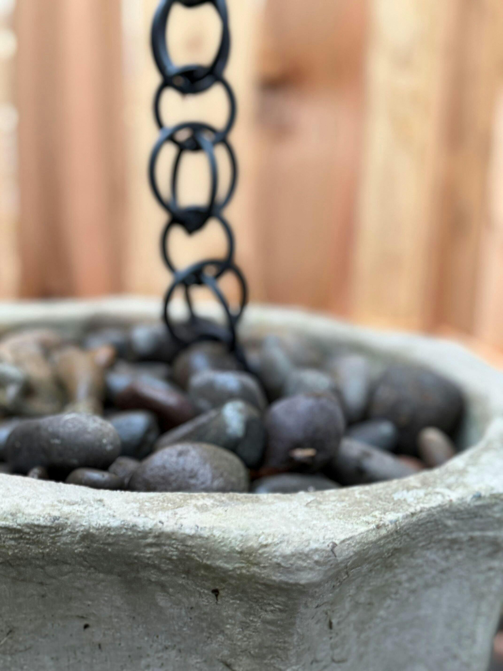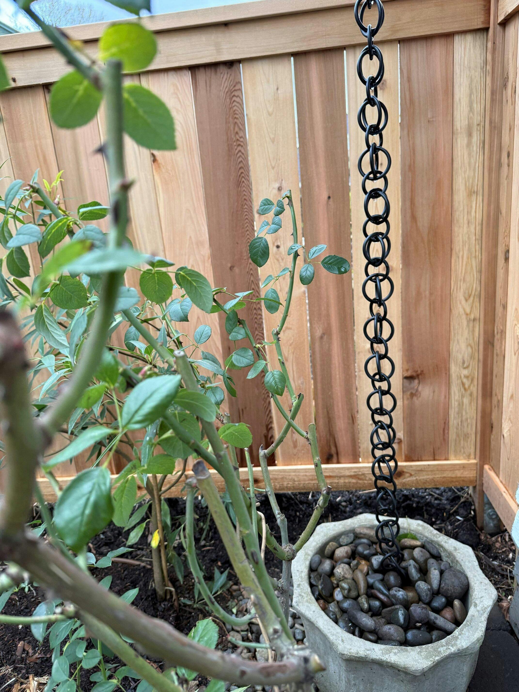 We've been wanting a rain chain for years, and this is the first company we've found one we like. Installed and we love it! It adds subtle style to our backyard, and it splashes much less than we thought it would, even in a hard rain.