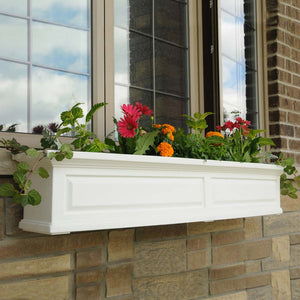 These window boxes are made from 100% high-grade Polyethylene, have a built-in water reservoir, and are weatherproof. This collection is available in Black, Espresso, and White.