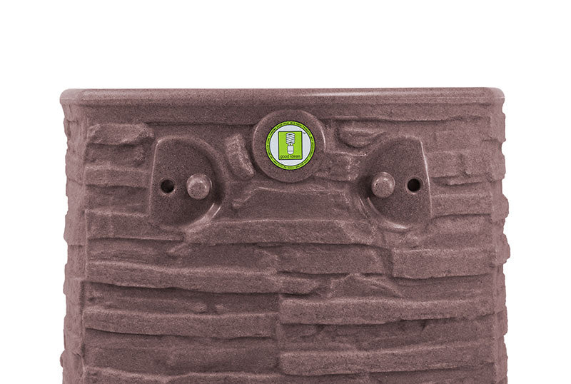 The Impressions rain barrel collection reinvents how you harvest rain water. This 50 gallon Riverwalk design is sturdy and one of the most eye-catching rain barrels on the market. It's unique, slate rock surface, creates a natural texture that shows how this barrel can be more artful in aesthetics instead of an obvious utility product. With a deep welled top, you can plant an array of floral arrangements or even a small herb or vegetable garden. The top also includes the Good Ideas, original, integrated overflow channel. This channel automatically diverts all overflow water to the front of the barrel and keeps your foundation from flooding. The large opening which can be used for 2x3 or 3x4 downspouts is covered with a soft, fine mesh, plastic screen. This screen keeps out heavy debris and insects for your piece of mind. Also included with the barrel are the two, offset spigot locations. Now you can use a five gallon bucket or hose simultaneously without issue. Or use the second spigot as an overflow into a second barrel. Who knew you could have so many features in a rain barrel? Impress your friends and neighbors with the Impressions Riverwalk 50 Gallon Rain Saver.