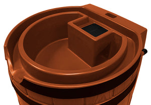 The Rain Wizard 65 with Darkened Ribs is a rustic faux oak rain barrel. It features a fine mesh screen to keep out bugs and debris along with a front-facing overflow channel. It also includes a one cubic foot, self-draining planter top. The flat-back can sit right up against exterior walls for a reduced footprint and features connection points for linking rain barrels together. Two standard 3/4" brass spigots are included for use with hoses or buckets. The Rain Wizard 65 also has a wood-grain texture that's highly detailed, adding incredible realism to your barrel. The military strength process allows this rain barrel to take heavy impacts and holds up against the harshest winters thanks to its FDA-approved, BPA-free polyethylene construction. Defeat droughts and make your plants happier with unchlorinated water. Made in the USA.