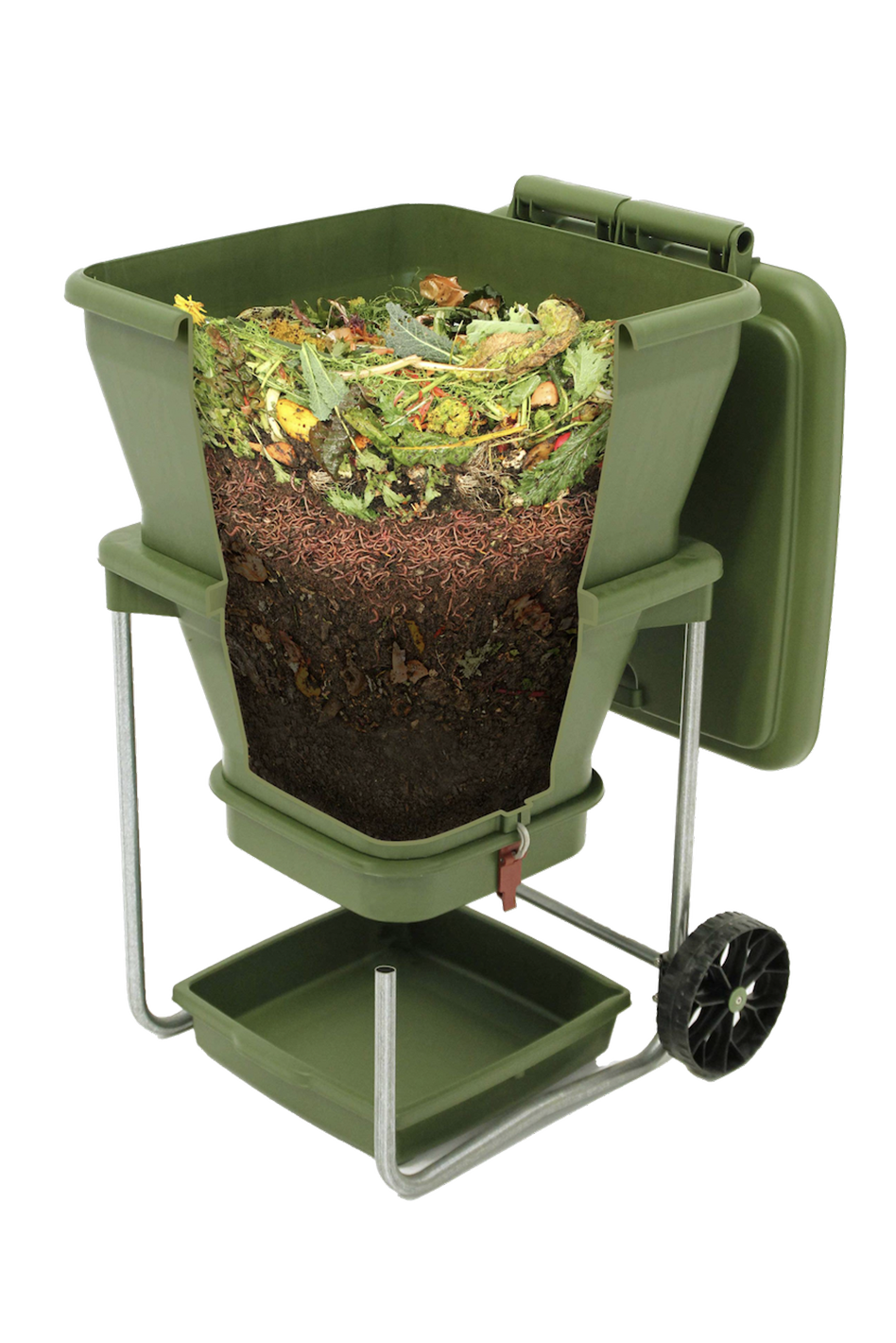 Finished compost is effortlessly collected from the bottom. No hassle, no fuss.