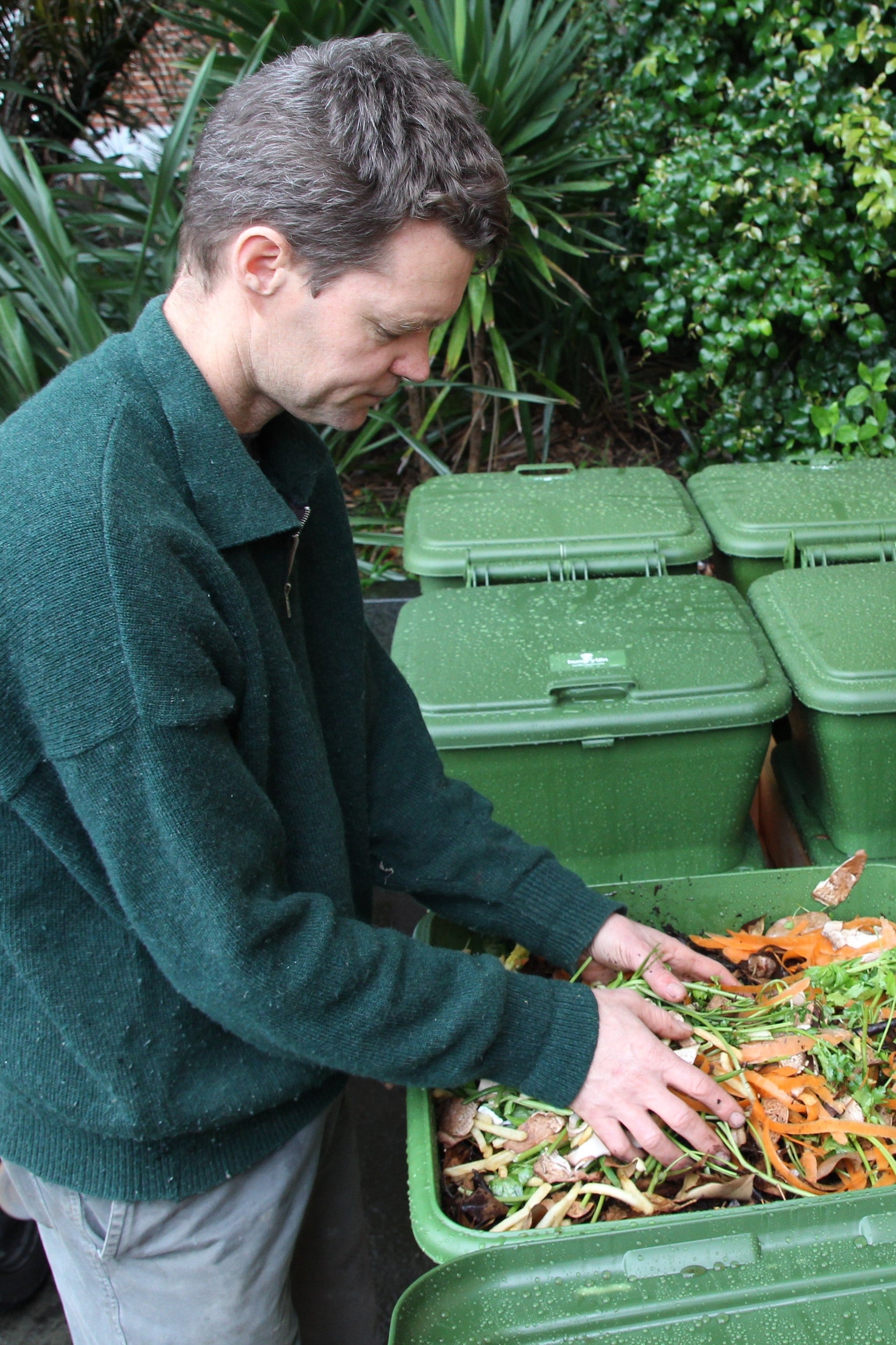 Just add your food waste to the top—no turning or mixing required!