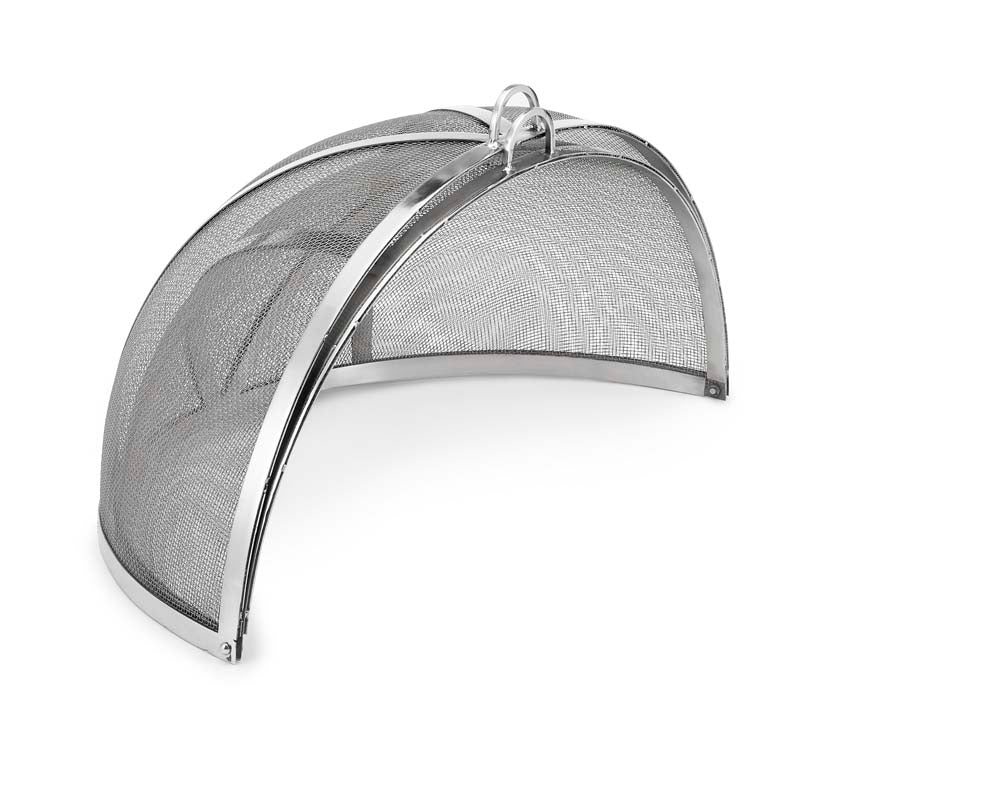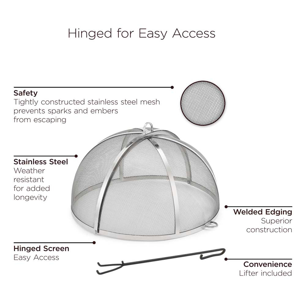 The intricately woven Stainless Steel mesh spark screen offers an added layer of protection to any outdoor fire pit blaze! Stainless Steel is weather resistant for added longevity. The screen is hinged to allow easy access to the fire without the need to remove the screen, and has convenient handles to open and close the screen. Use the included spark screen lifter to easily slide the screen open and closed. Due to the hinged nature of the screen, the diameter is shorter one way than the other, which allows the shorter screen to easily rotate open inside the larger half of the screen.