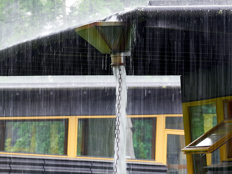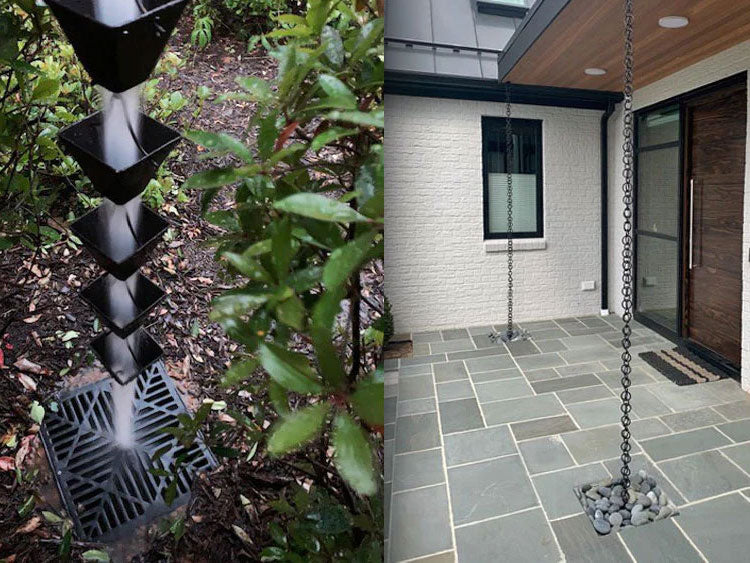 We get many questions and concerns about rainwater splashing off of rain chains. Here are some things to consider!