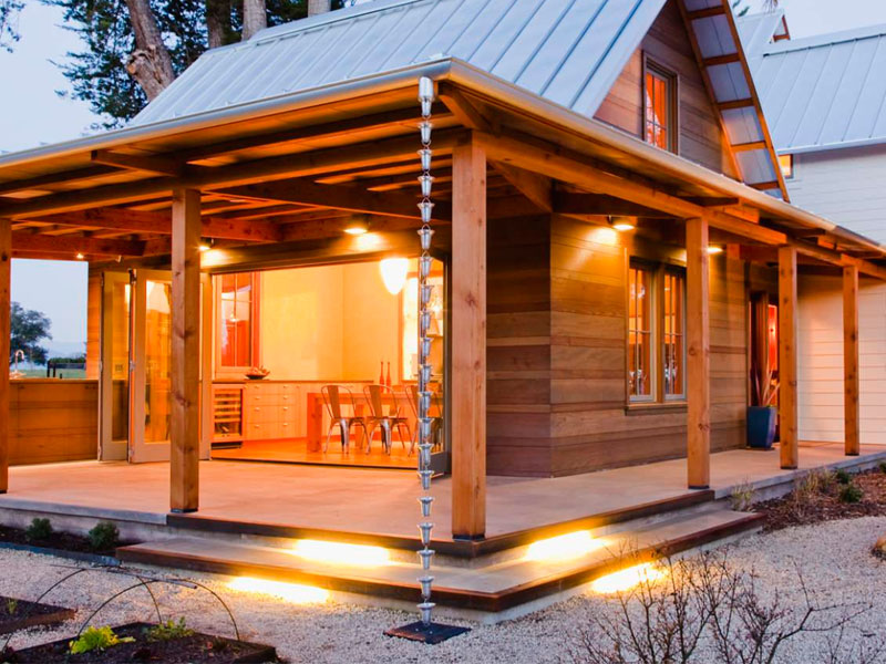 Even if your home doesn't have gutters, it's still totally possible to use a rain chain with a Corner Leaderhead.