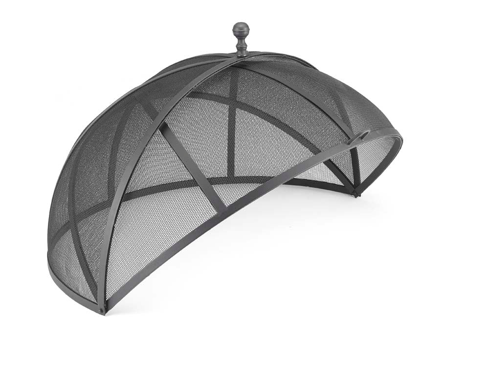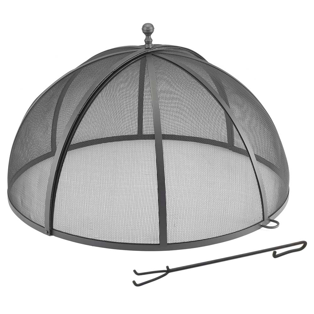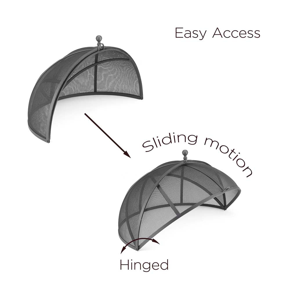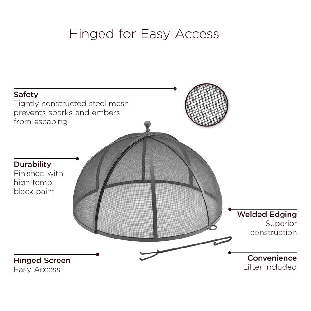 The intricately woven powder-coated mesh spark screen offers an added layer of protection to any outdoor fire pit blaze! The screen is hinged to allow easy access to the fire without the need to remove the screen, and has convenient handles to open and close the screen. Use the included spark screen lifter to easily slide the screen open and closed. Due to the hinged nature of the screen, the diameter is shorter one way than the other, which allows the shorter screen to easily rotate open inside the larger half of the screen.