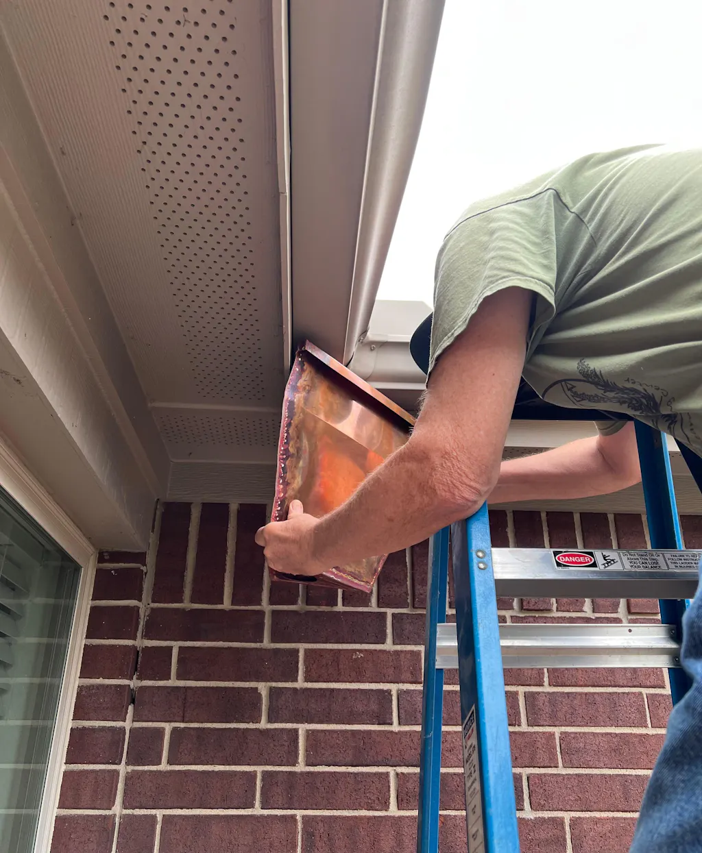We have an interior corner with gutters but no downspout. Water would accumulate there and drip making a puddle below. This corner leaderhead works to hold a rain chain and guide the excess water to a drainage pot. We had a little trouble installing it because we placed it took high under the gutters and couldn’t see the screws. Once we got it on, though, it looked good and worked well.